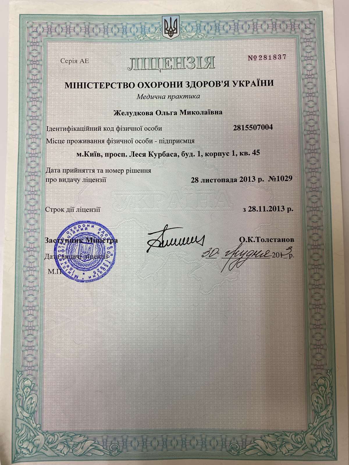 *Ліцензія МОЗ України №281837 від 28.11.2013р.